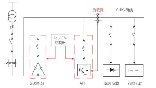 设备采用有源(APF/SVG)和无源TSC相结合的补偿方案,结合两者特点,采用有源与无源同柜,进行统一的控制